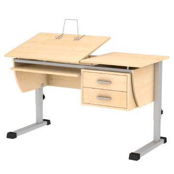 - Модели с одним или двумя ящиками делают удобным место нахождения учебников, тетрадей, дополнительного материала. Не нужно рыться в портфеле, отвлекаясь от объяснения учителя: все предметы лежат на месте в ящике.