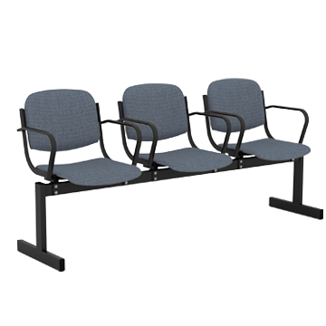 253МП Блок стульев 3-местный, мягкий, не откидывающиеся сиденья, с подлокотниками м/к черный, Иск.кожа, коричневый