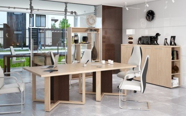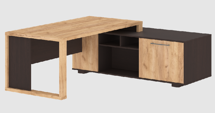 Кабинет ALTO - статусная мебель для кабинета руководителя, выполненная в современном стиле. Контрастная отделка и рамочные опоры столов определяют легкий и динамичный характер кабинета. Простота форм, отсутствие лишних деталей и надежная фурнитура позволяют создать интерьер на долгие годы. Характеристики: Толщина столешницы: 38 мм. Опоры столов: Рамочные, с контрастной декоративной вставкой. Основной материал: ЛДСП, класс эмиссии Е1 Защита торцевых поверхностей основных элементов: кромка ПВХ 2 мм. Лицевая фурнитура: Материал — металл, цвет — алюминий Регулируемые опоры столов и шкафов: металлические с пластиковым основанием, диапазон регулировок – до 15 мм. Ящики тумб: фолдинг 12 мм. Замки на тумбах: центральные Направляющие: телескопические (шариковые) Силовые сочленения: эксцентриковые стяжки Гарантия: 60 месяцев