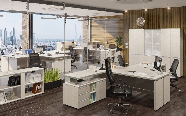 Кабинет BELLA VITA - мебельное решение для организации рабочего места руководителя современного дизайна. Эффект "парящих" столешниц придает легкость строгим линиям кабинета. Мебель для руководителя BELLA VITA изготавливается в такой же цветовой гамме, что и мебель для персонала VITA-1. Благодаря этому сочетанию, Вы легко сможете обустроить офисное пространство в едином стиле. Кабинет выполнен из ламинированной ДСП плиты, толщиной в 38, 25 и 18 мм. Кромка ПВХ, толщиной от 2 до 0,5 мм. Опоры мебели - регулируемые. Задняя стенка шкафов выполнена из ТСН, толщиной 3 мм. Направляющие в тумбах - роликовые. Ручки в мебели - врезные, металлические, цвет "алюминий".