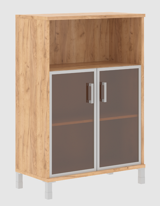 В 420.4 Шкаф средний с малыми стеклянными дверьми в AL рамке 900*435*1286