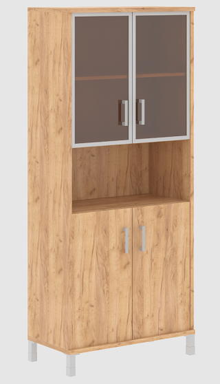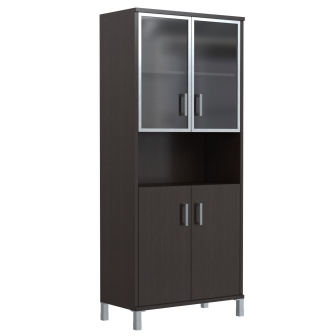 В 430.9 Шкаф высокий с малыми стеклянными дверьми в AL рамке и глухими 900*435*2054