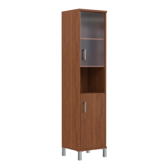 В 431.10 Л Шкаф колонка высокая с малой стеклянной дверью и глухой 475*435*2054 бургунди