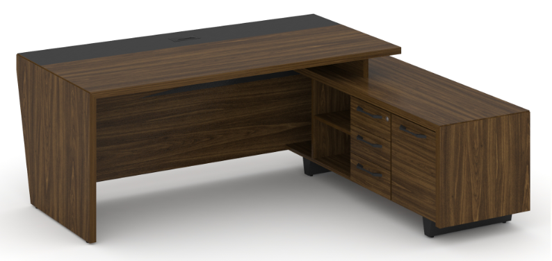 COR.SRT-20(R) Стол руководителя с опорной тумбой, правый 2000*1800*750 Гикори Песочный/Ваниль