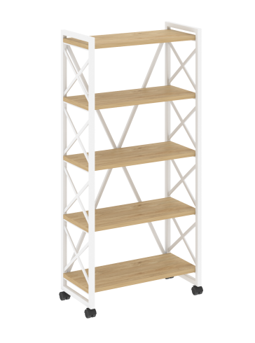 VR.L-MST.K-5.8 Стеллаж на колесных опорах-5 полок 800*400*1704 Тиквуд светлый/металл белый