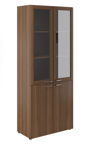 KST-1.4 Шкаф высокий широкий (2 низкие двери ЛДСП, 2 низкие двери стекло) 801*432*2060