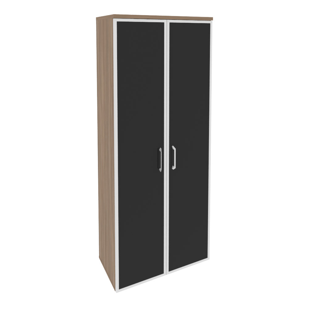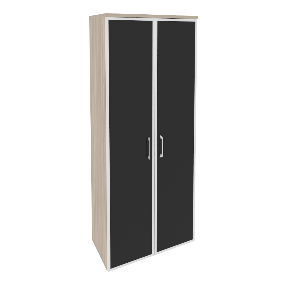 O.ST-1.10R white/black/mate Шкаф высокий шир. (2 высоких фас. стекло лакобель в раме) 800*420*1977 Белый бриллиант
