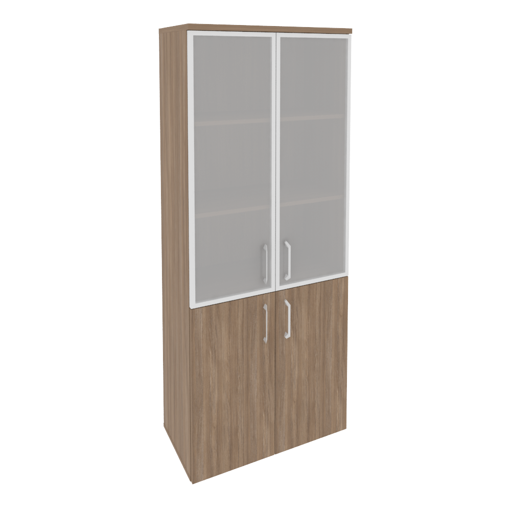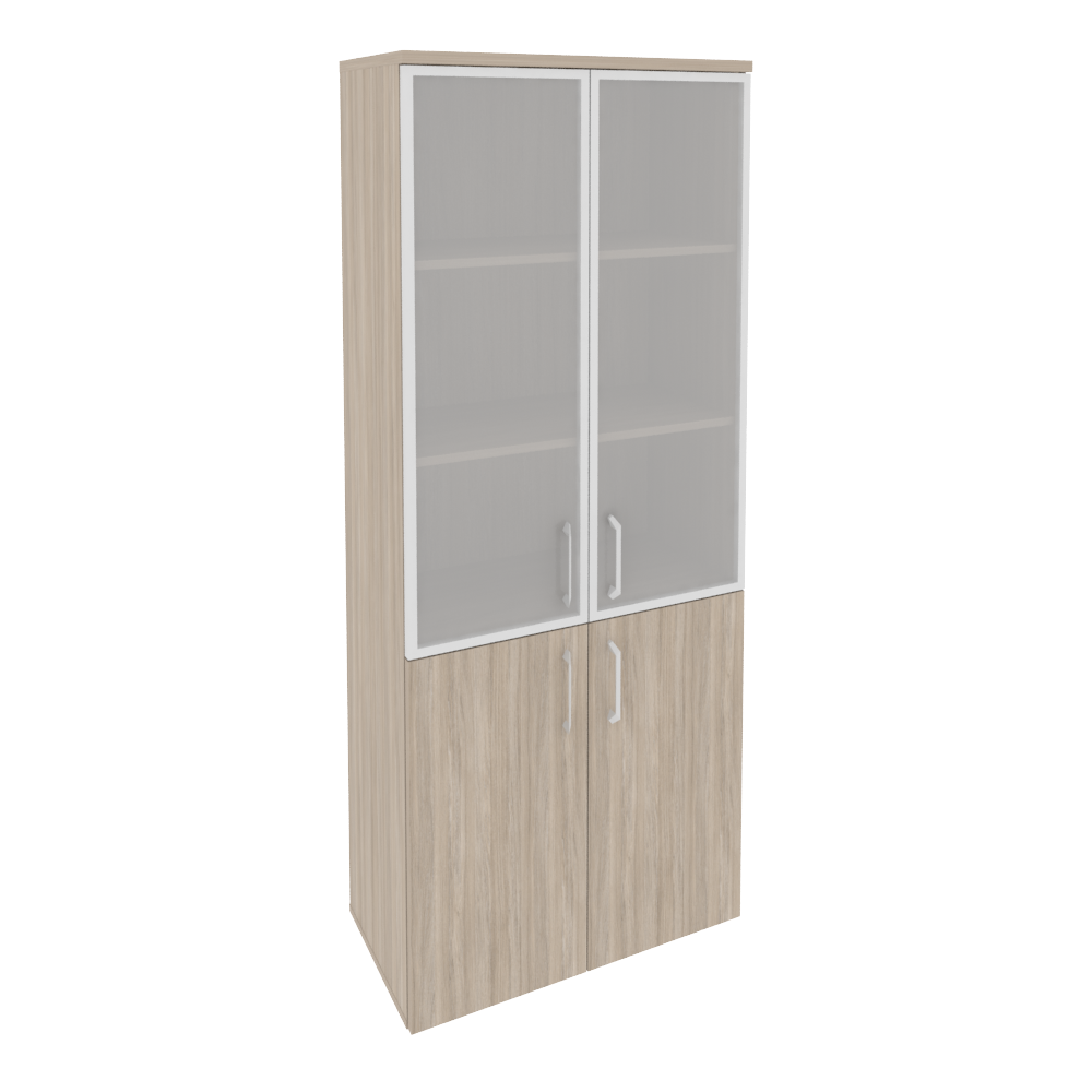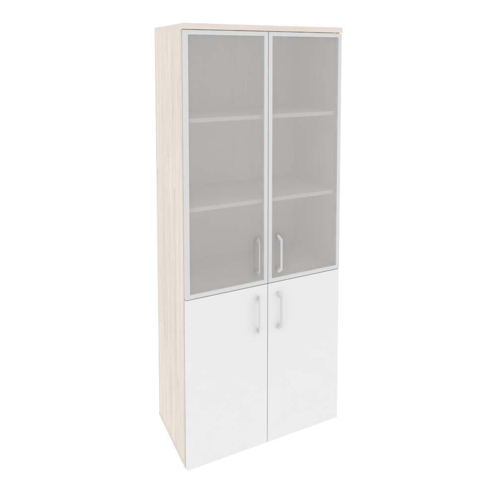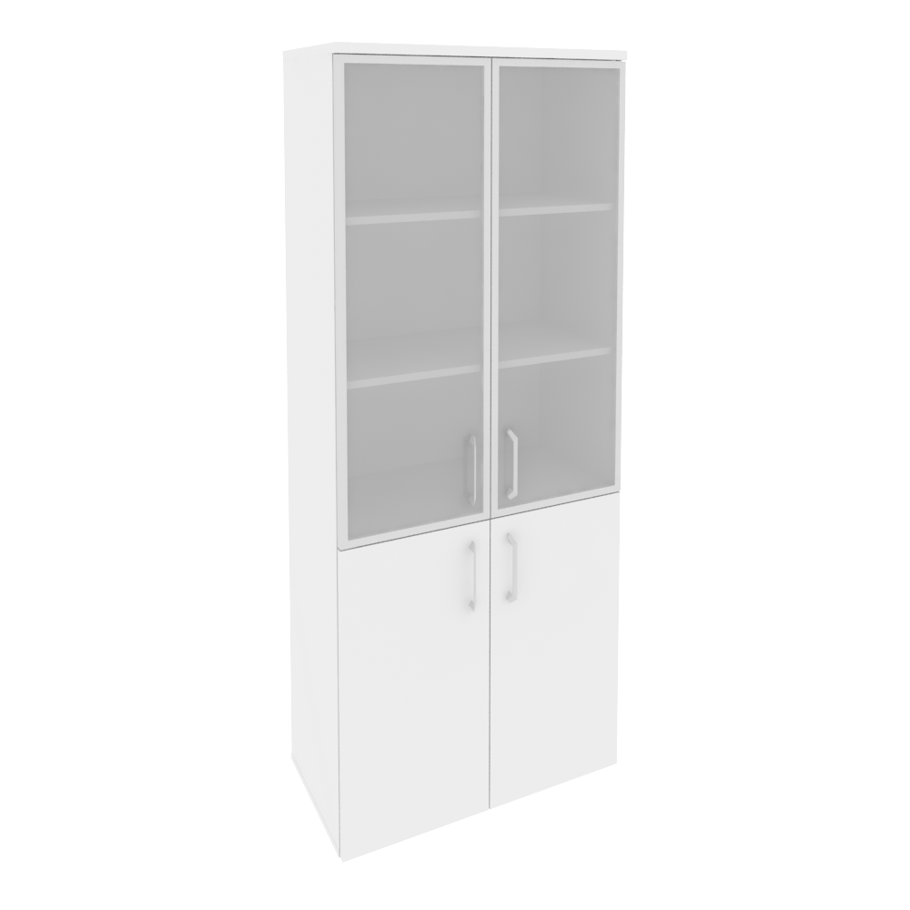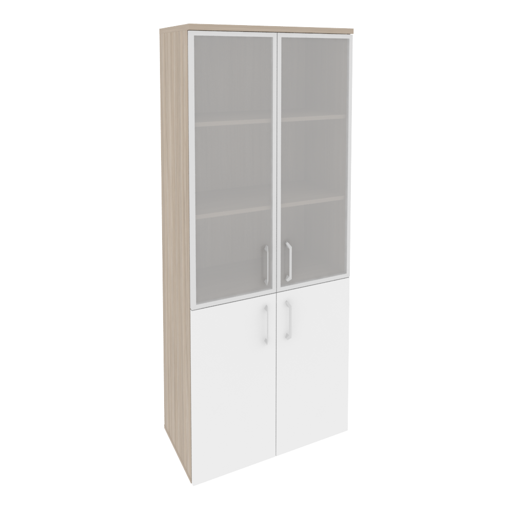 O.ST-1.2R Шкаф высокий широкий (2 низких фасада ЛДСП + 2 средних фасада стекло в раме) 800*420*1977 Белый бриллиант