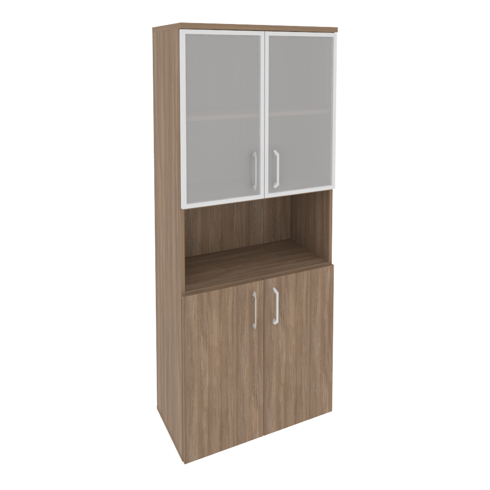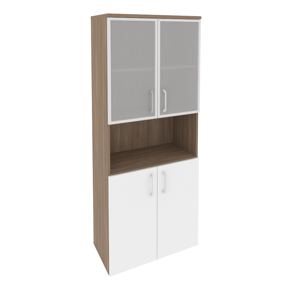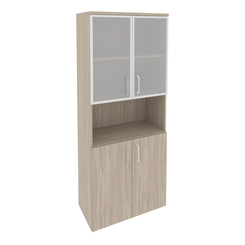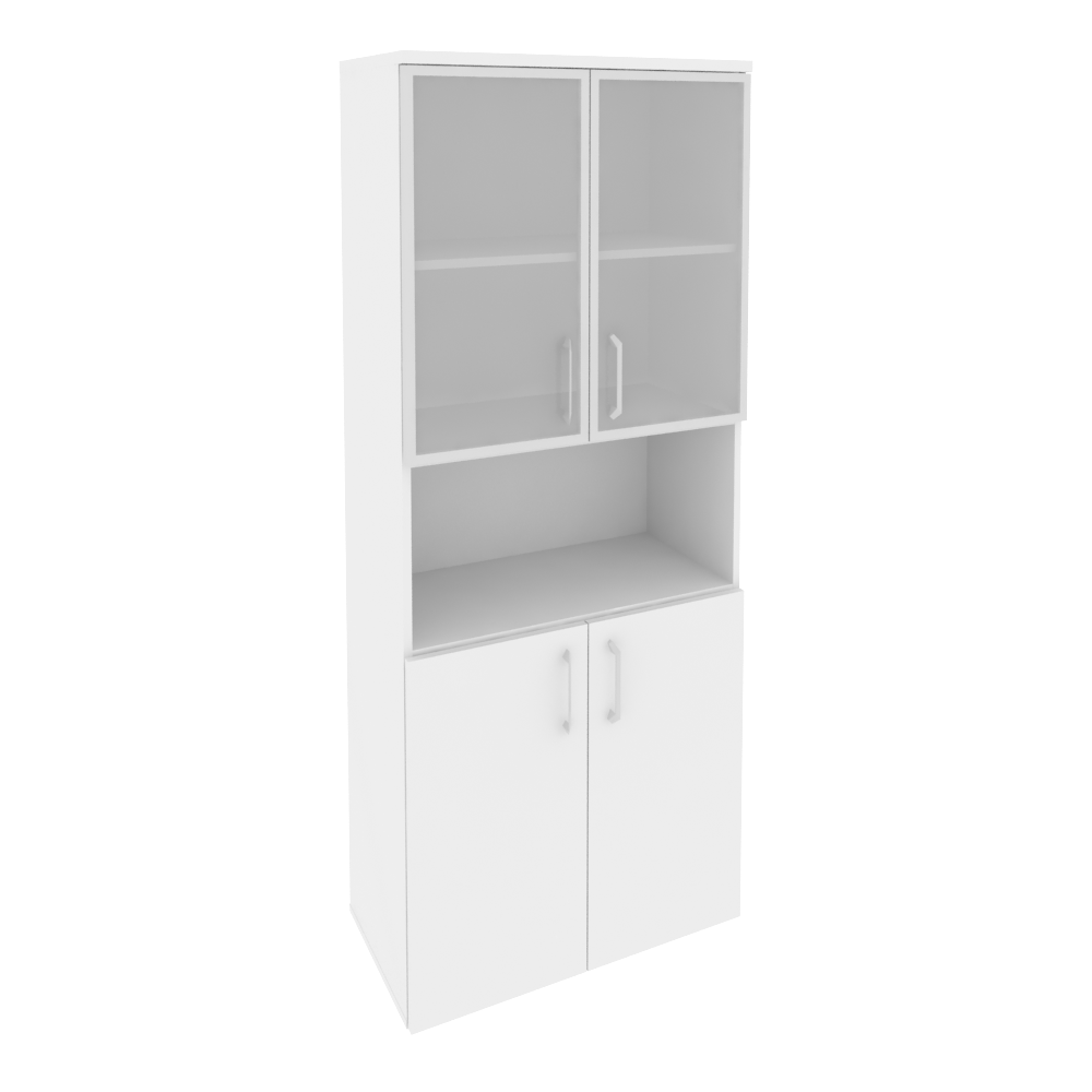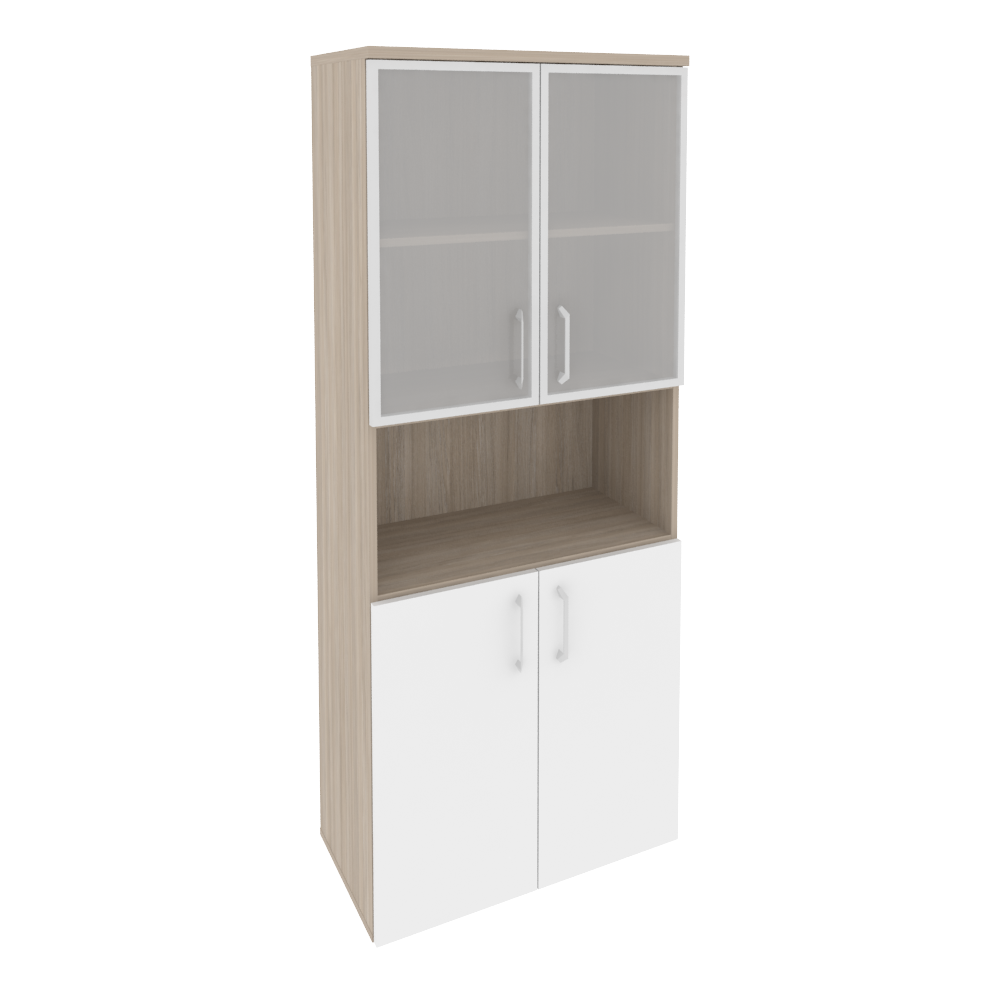 O.ST-1.4R Шкаф высокий широкий (2 низких фасада ЛДСП + 2 низких фасада стекло в раме) 800*420*1977 Белый бриллиант