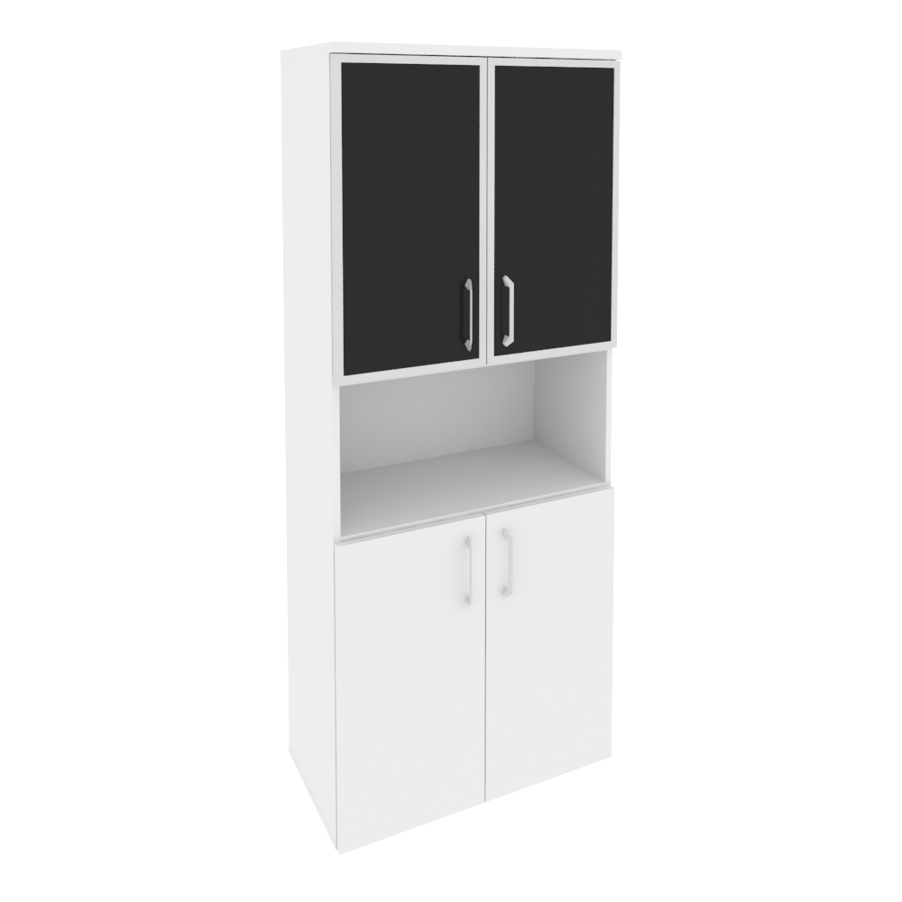 O.ST-1.4R white/black/mate Шкаф выс. шир. (2 низких фас. ЛДСП + 2 низких фас. стекло лакобель в раме