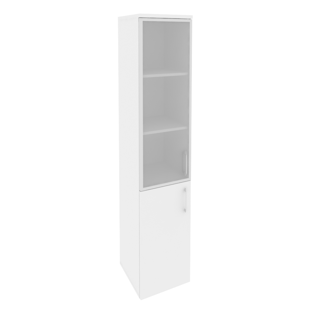 O.SU-1.2R(L) Шкаф высокий узкий левый (1 низ. фасад ЛДСП + 1 сред. фасад стекло в раме) 400*420*1977 Корпус Денвер светлый/фасады белый бриллиант