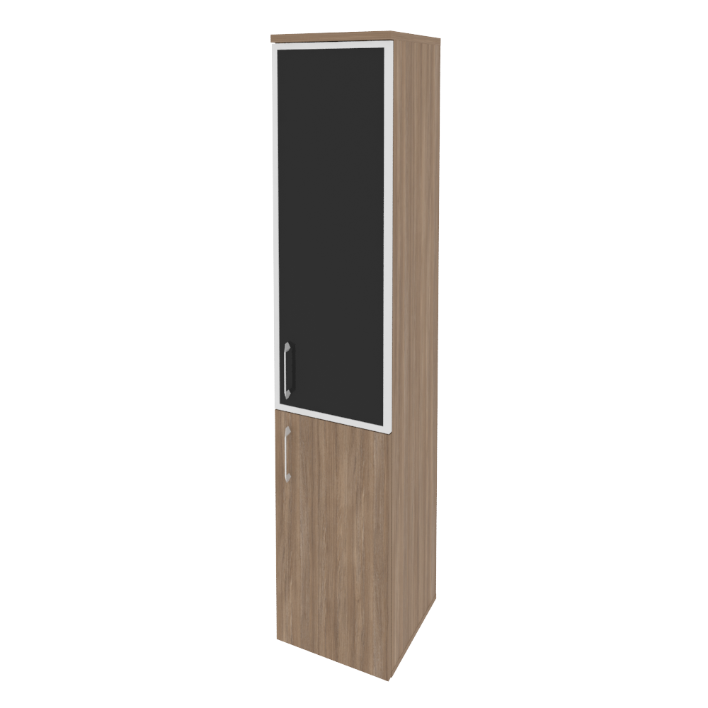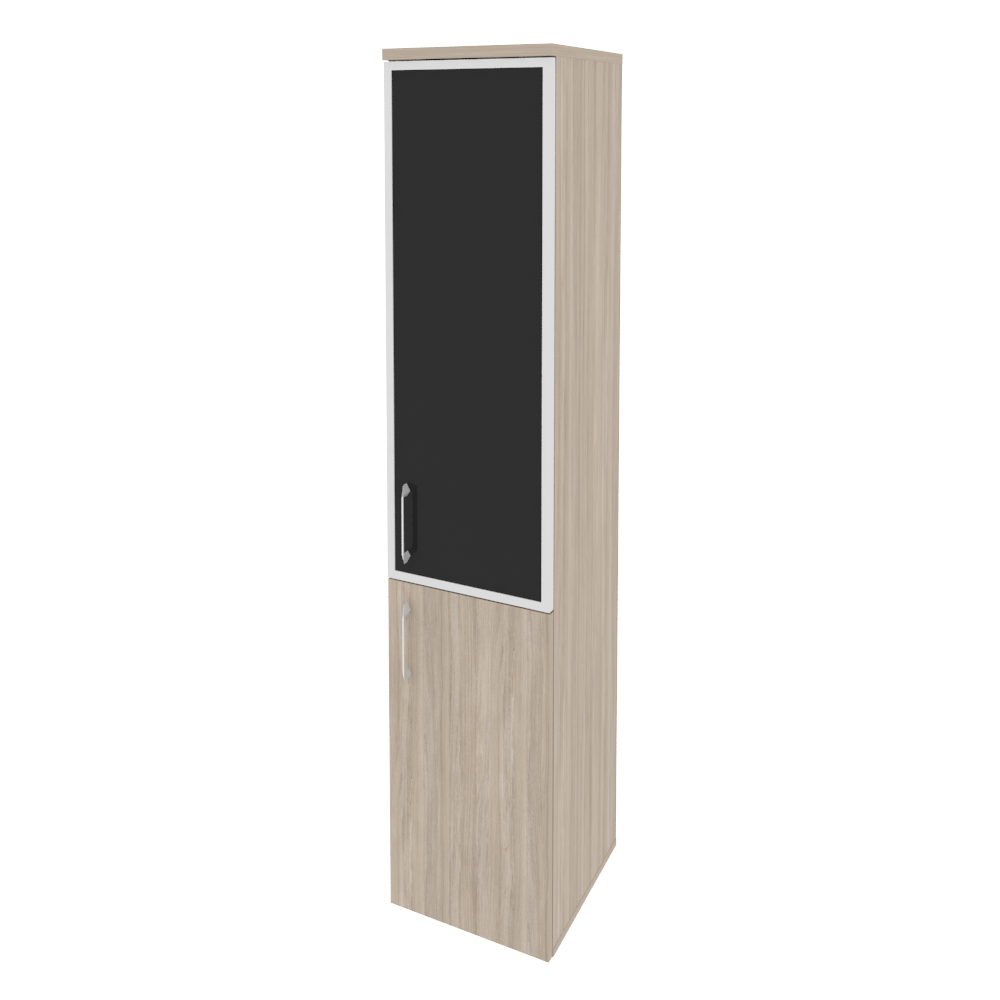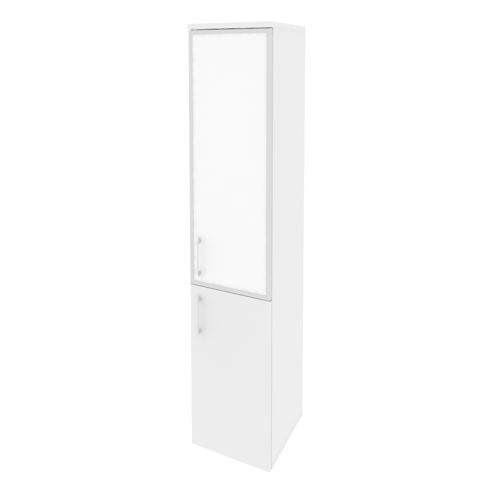 O.SU-1.2R(R) white/black/mate Шкаф выс. уз. правый (1 низ.фасад ЛДСП + 1 сред. фасад стекло лакобель