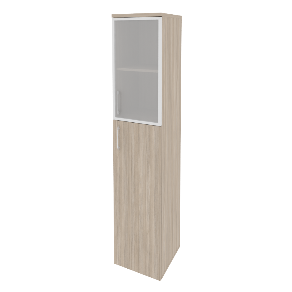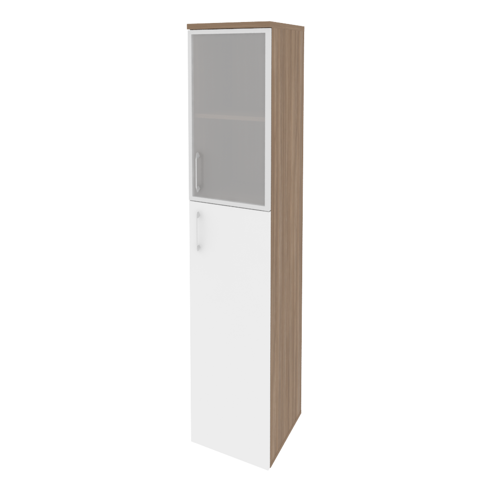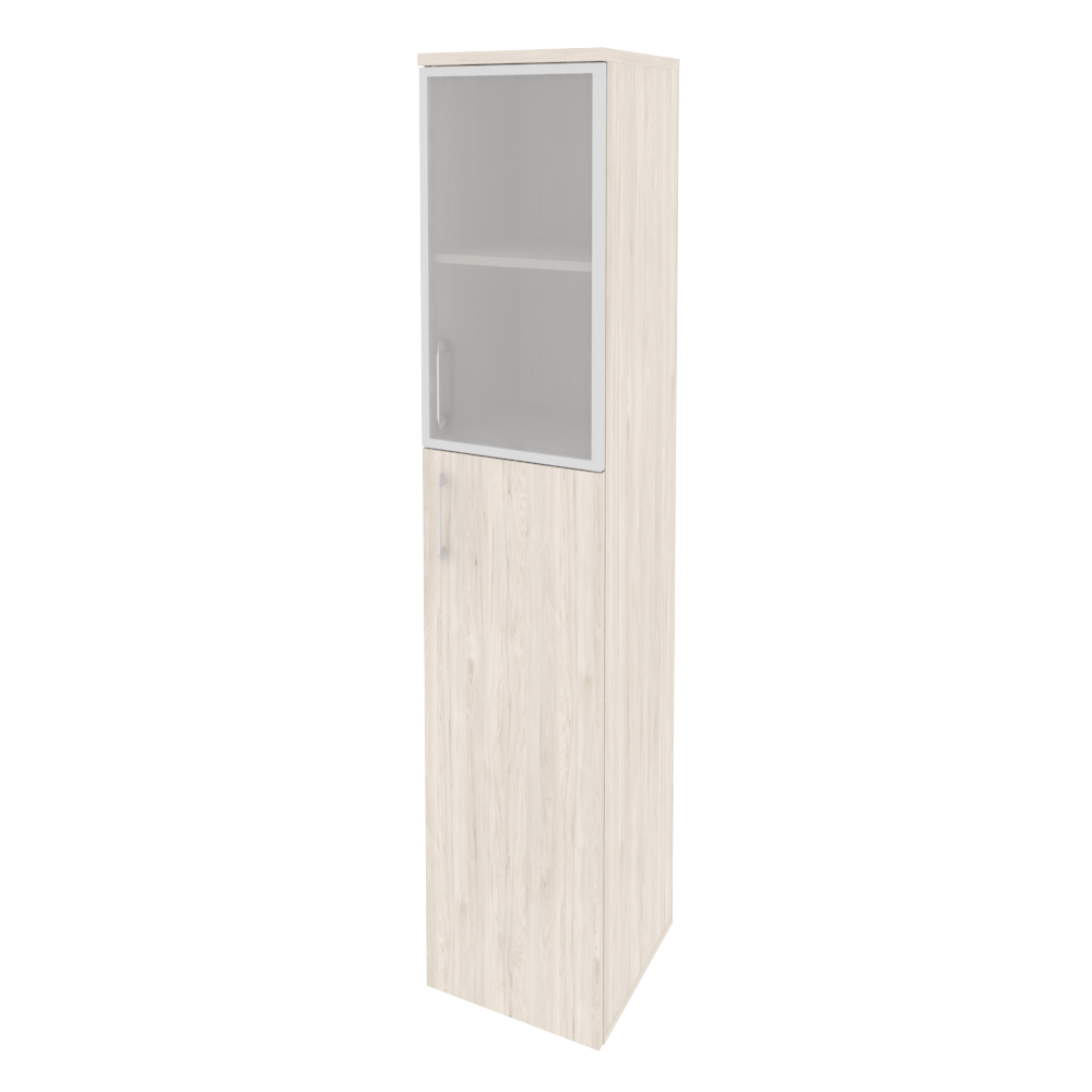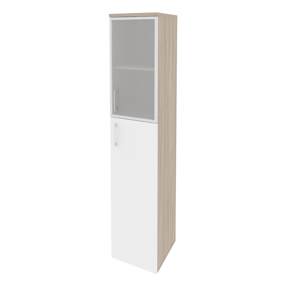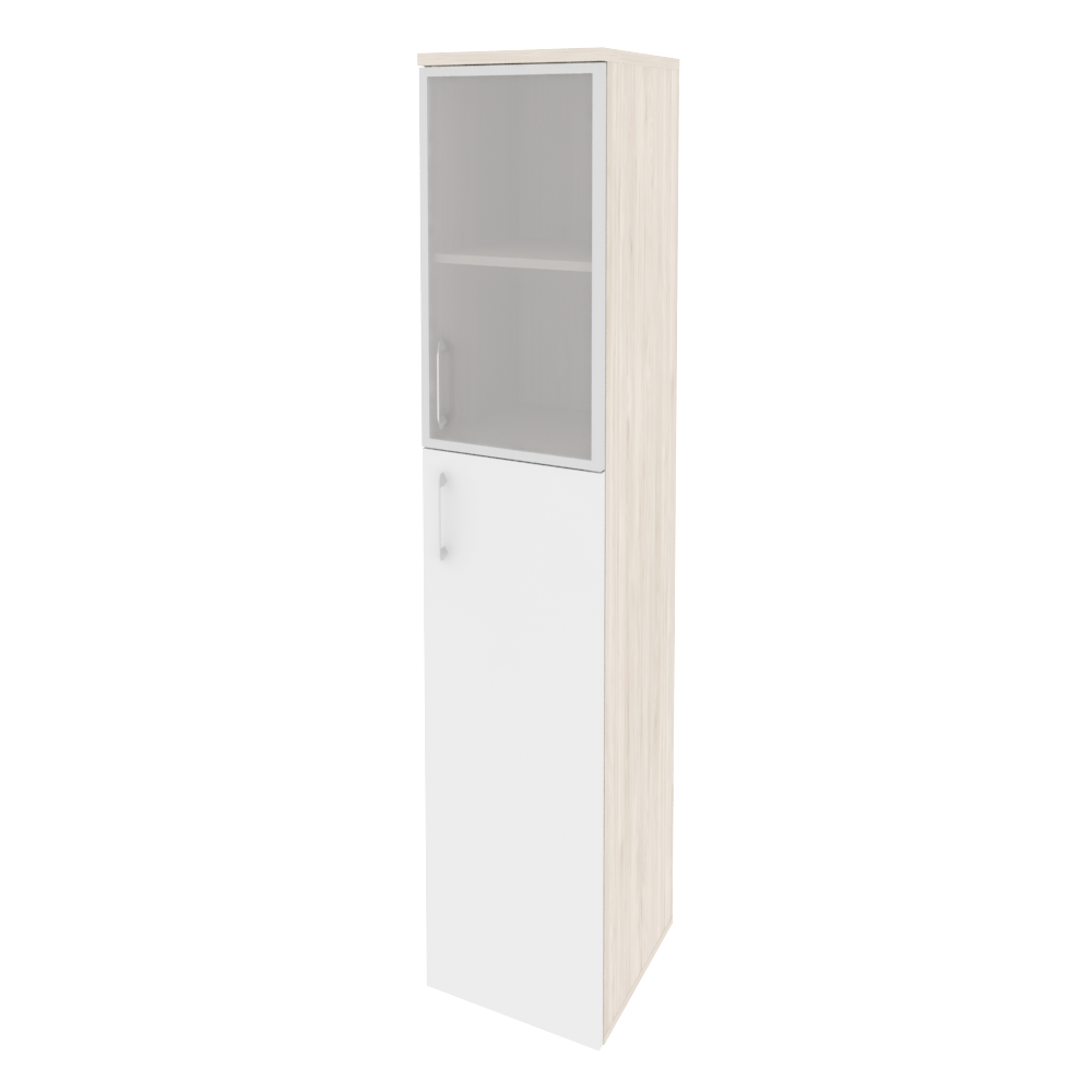 O.SU-1.7R(R) Шкаф высокий узкий правый (1 сред. фасад ЛДСП + 1 низ. фасад стекло в раме) 400*420*197 Белый бриллиант