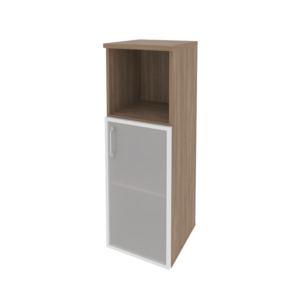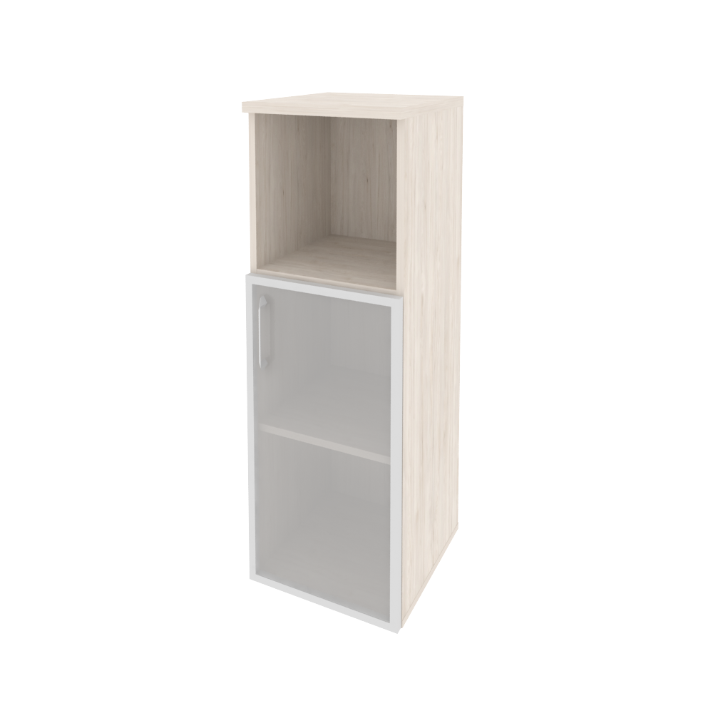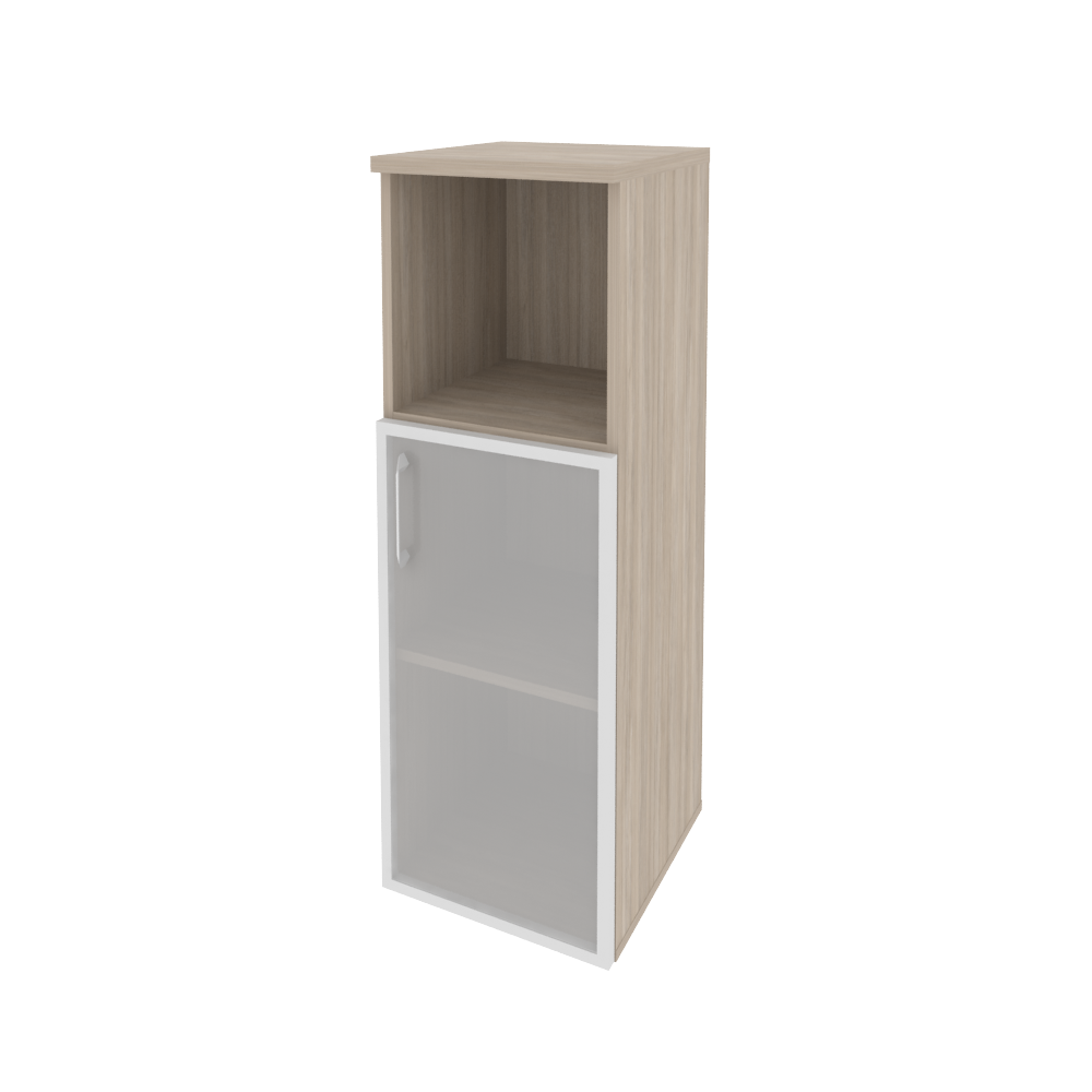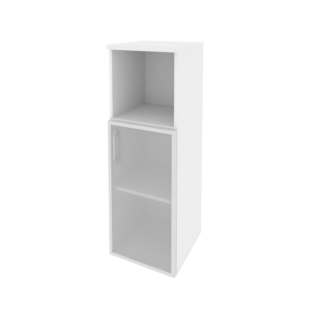 O.SU-2.2R(R) Шкаф средний узкий правый (1 низкий фасад стекло в раме) 400*420*1207 Белый бриллиант