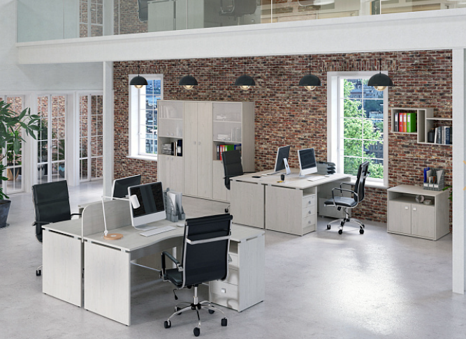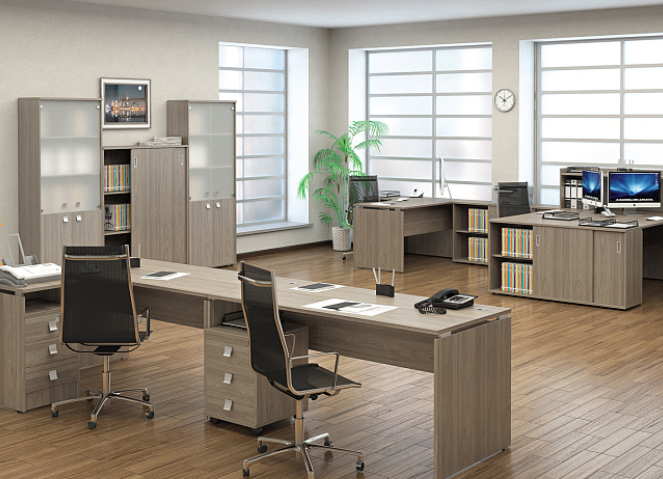 Мебель серии Style гармонично вписывается в любой интерьер благодаря разнообразию цветовых решений, создавая приятную атмосферу как для сотрудников, так и для посетителей офиса. Исполнение: ЛДСП толщиной 22, 18 мм, производство "Kronospan". Все детали столов, топы/каркасы тумб, приставки, топы/каркасы стеллажей - ЛДСП 22 мм. Фасады тумб и шкафов - ЛДСП 18 мм. Цвета ЛДСП: Вяз Благородный, Акация Лорка, Белый, Дуб Наварра.