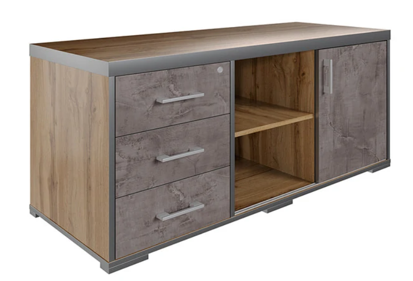 ТУРИН выполнен в экостиле с применением в отделке торцевых поверхностей 3D - акриловой кромки цвета металлик. Характеристики: Толщина столешниц всех рабочих поверхностей, топов тумб и шкафов - 48 мм, толщина боковых стенок столов - 48 мм. Каркасы тумб и шкафов, а также фасады тумб и шкафов изготовлены из плиты ЛДСП - 18 мм. Задняя стенка шкафов и стеллажей выполнена из плиты ЛДСП 8 мм. Столы и тумбы оснащены нерегулируемыми пластиковыми опорами. Подкатная и сервисная тумбы оборудованы замками для верхнего ящика. Тумбы оснащены скрытыми направляющими полного выдвижения TANDEM (Blum, Австрия), обеспечивающие плавное и бесшумное закрывание. Направляющие также оснащены механизмом самозакрывания BLUMOTION. Шкафы укомплектованы петлями Sensys c демпфером Silent System (Hettich, Германия).