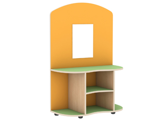 Уголок игровой "Трюмо" Меламин, стойки-клен, фасады-синий, полки-желтый