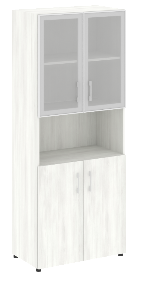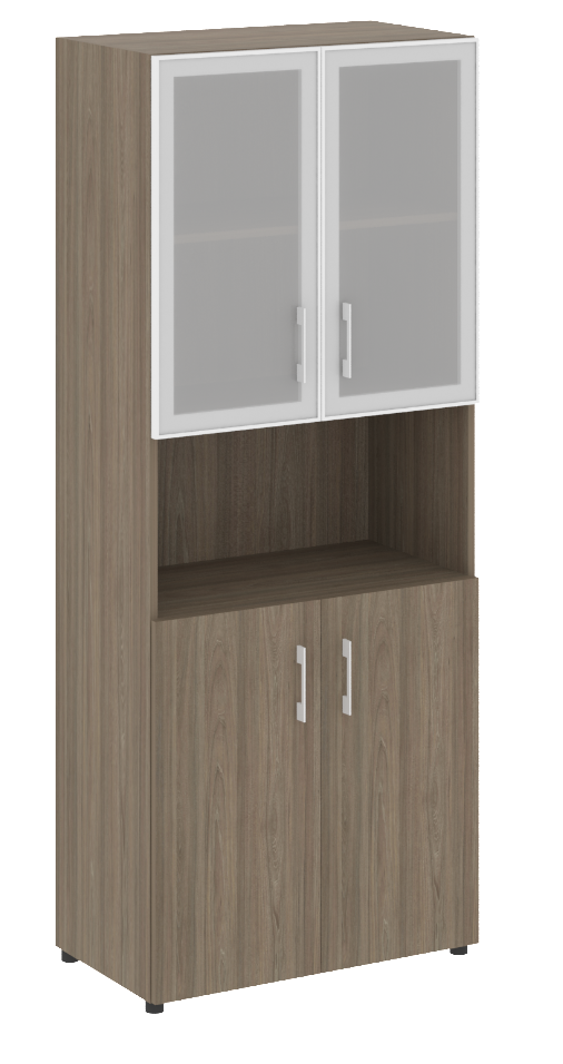 LT.ST-1.4 R Шкаф высокий широкий (2 низких фасада ЛДСП + 2 низких фасада стекло в раме) 800х450х1987 Акация