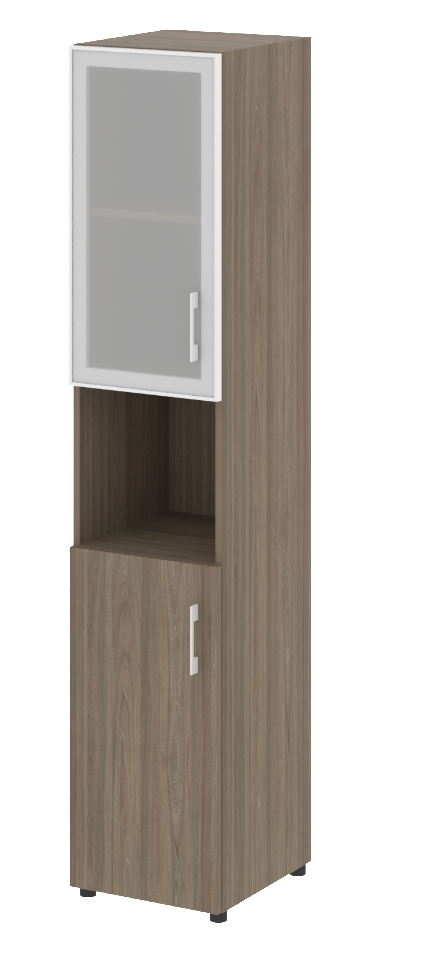 LT.SU-1.4 R (L) Шкаф высокий узкий левый (1 низкий фасад ЛДСП+1 низкий фасад стекло в раме)