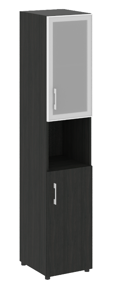 LT.SU-1.4 R (L) Шкаф высокий узкий левый (1 низкий фасад ЛДСП+1 низкий фасад стекло в раме)