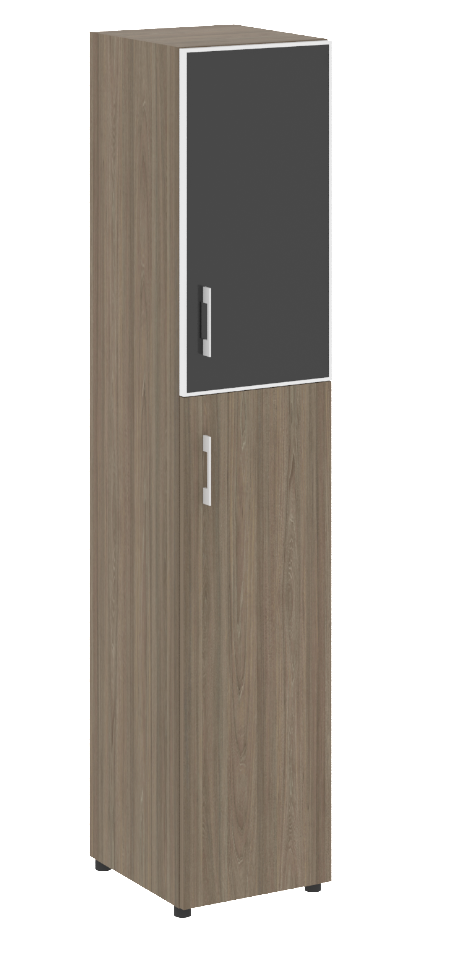 LT.SU-1.4 R (L) Шкаф высокий узкий левый (1 низкий фасад ЛДСП+1 низкий фасад стекло в раме)